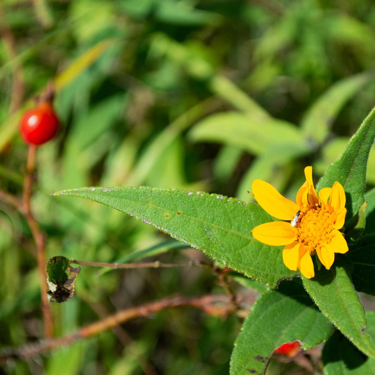Story Follows an insect into the world looking for something to eat. Starting with an overall image of the area the insect lives. Next image shows that some of the flowers have already bloomed and died. Followed by image of a flower that is already occupied by another insect. Next is an image of some nice flowers but not what the insect is looking for. Final image is of the insect enjoying its favorite kind of flower.